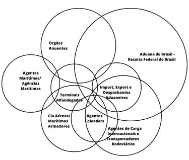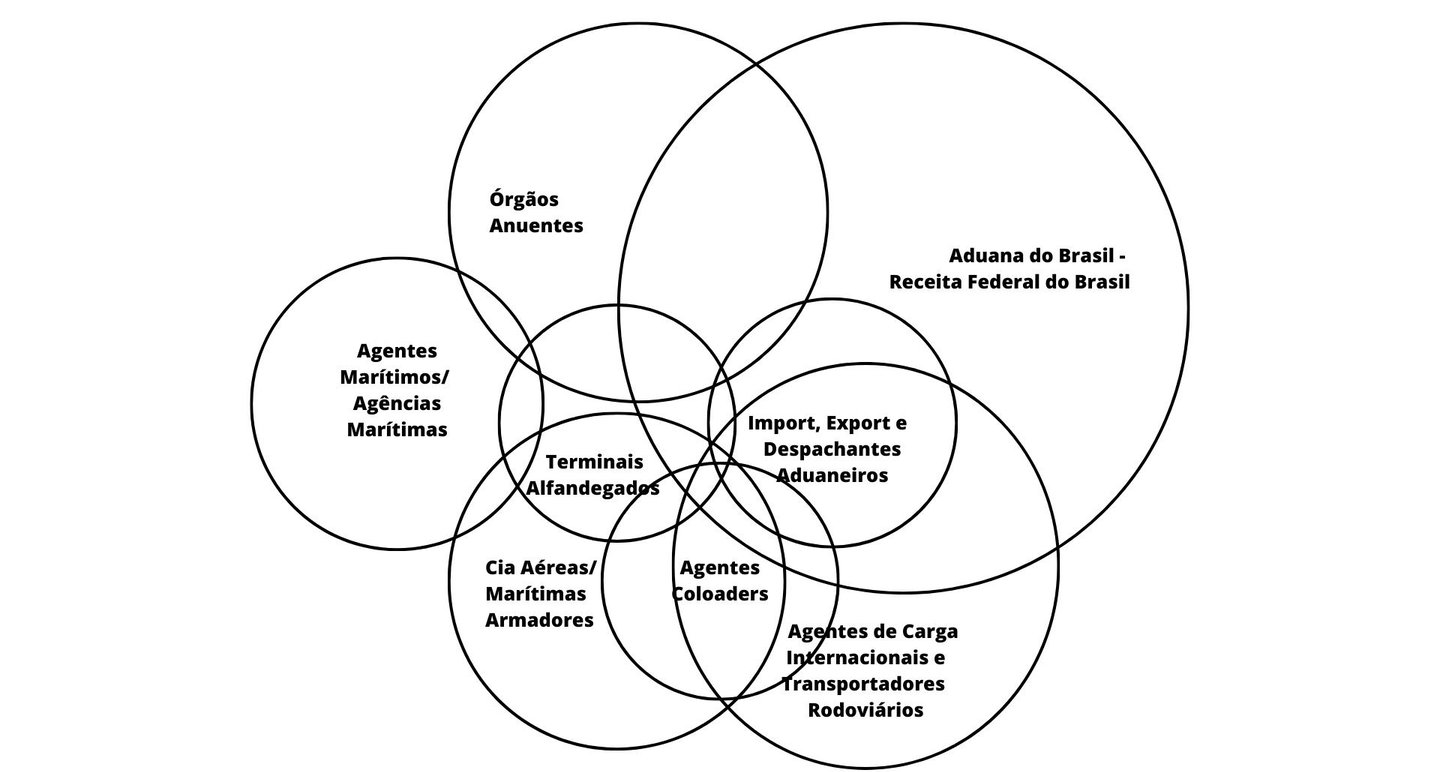 A imagem a seguir destaca a relação entre todos os intervenientes no Comércio Exterior brasileiro citados nesse artigo. Na imagem é possível identificar quais intervenientes possuem relacionamento entre si